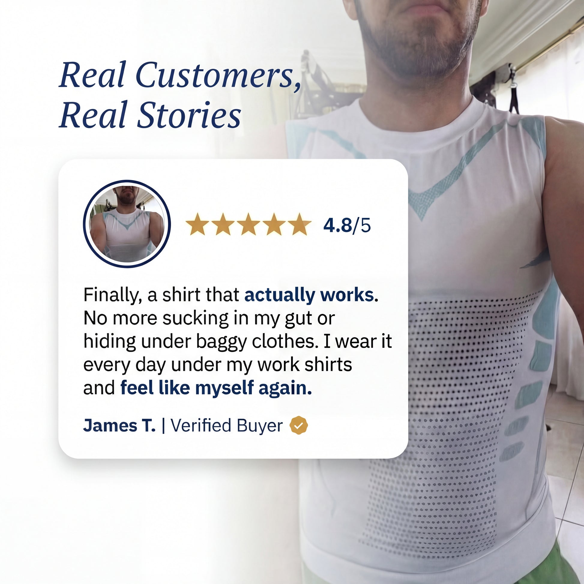 Noticed a visible slimming transformation the moment they put it on — flatter belly, flatter chest, slimmer silhouette. No diet, no gym, no waiting.